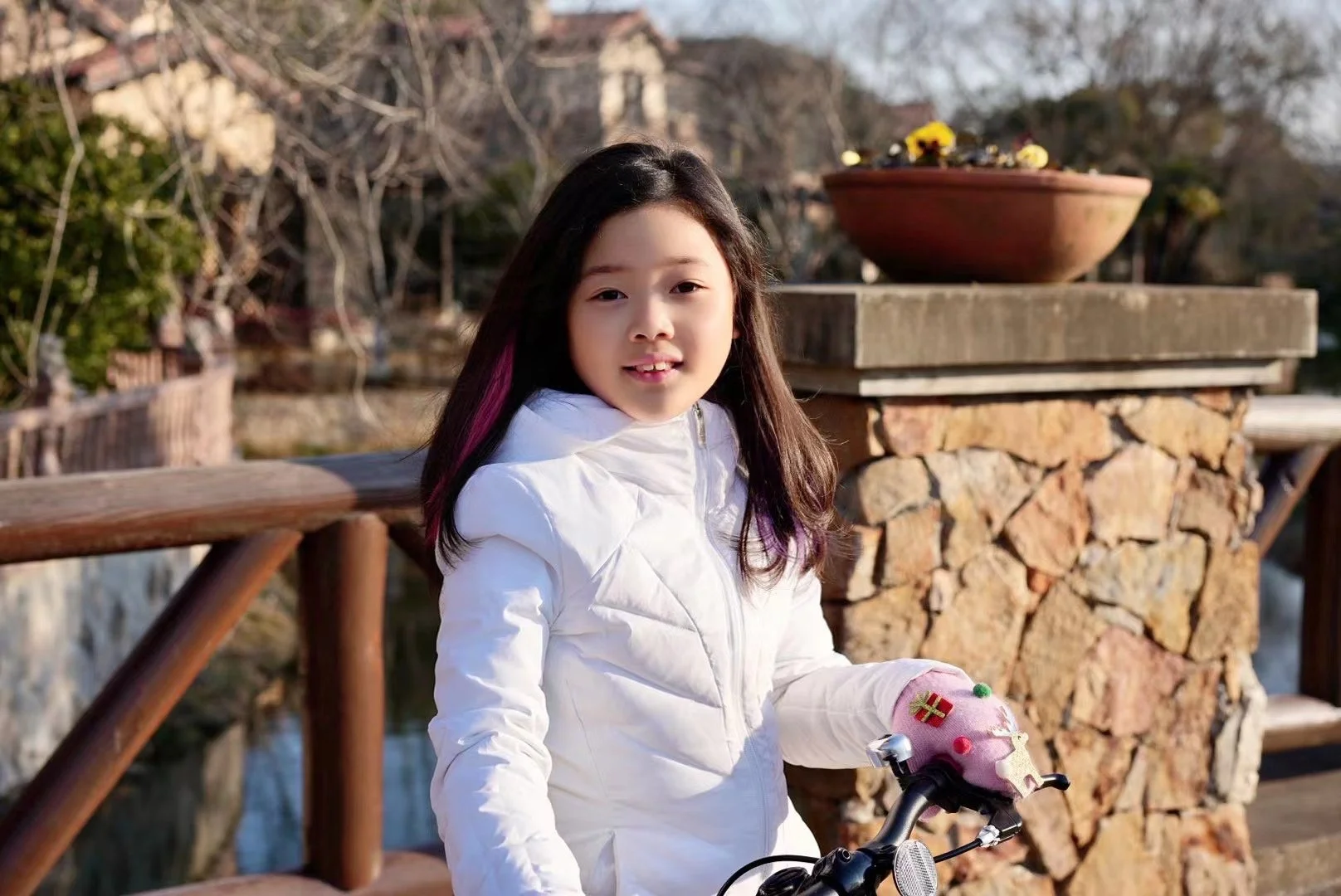 Iris loves animals and she enjoys riding her bike around her house very much!